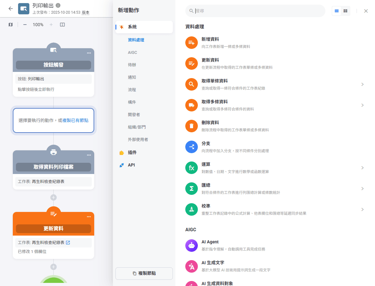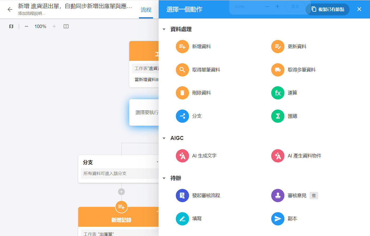 內建的自動化功能按鈕,只需一鍵操作,即可自動執行預設的工作流程,大幅提高效率並減少手動操作。